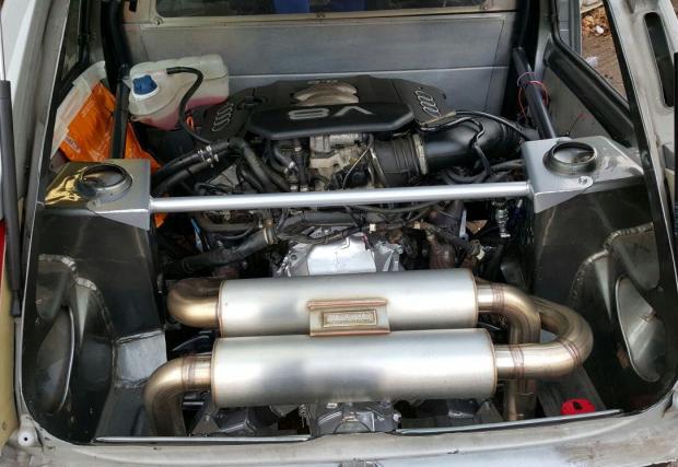 Снимките намерихме в няколко форума, като така и не открихме такива на абсолютно завършения автомобил. Попаднахме обаче на видео със стартирането на машината, още от времето преди странната боя.