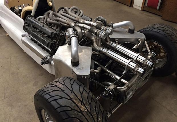 Дон харесва 1JZ мотора на Toyota, но му се струва недостатъчен за състезателната му самоделка. Решението? Да завари два един за друг под ъгъл 120 градуса и да завинти по един Garrett за всеки. Резултатът може да видите в галерията, както и да го чуете чрез видеото.