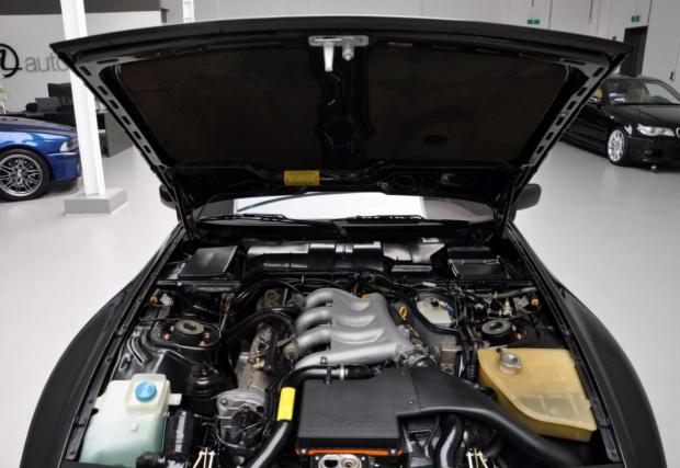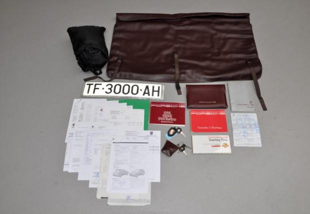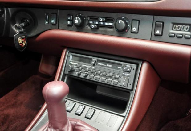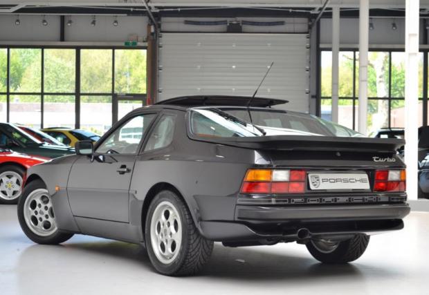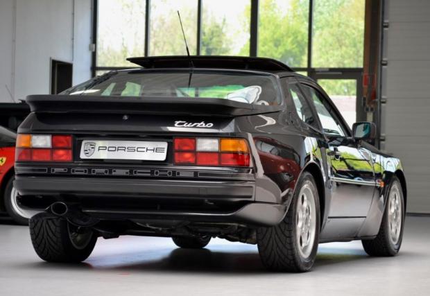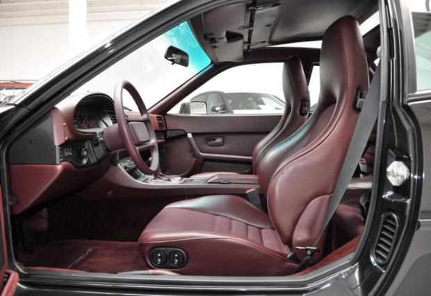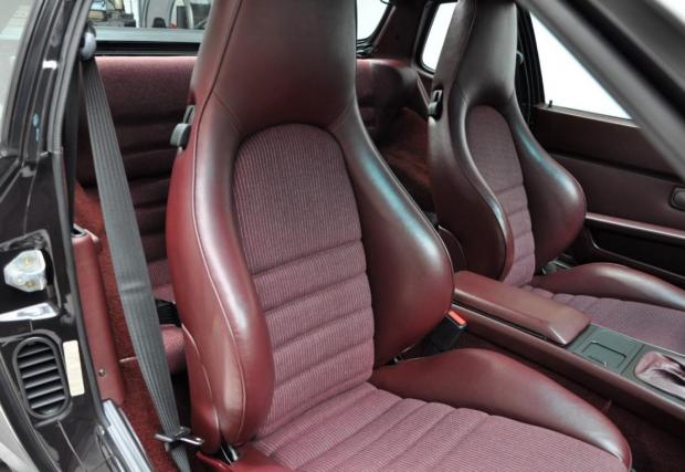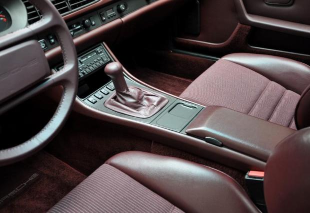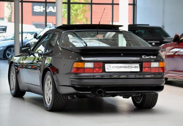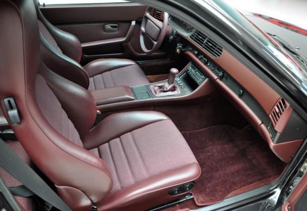 Porsche-то не е 911, моделът дефиниращ марката, но е 944 Turbo, в перфектно състояние. Годината на производство е 1987-ма, пробегът на колата е 69 418 км, под предния капак работи 2,5-литров 4-цилиндров турбо мотор с 220 к.с., а цветът е ‘Satinschwarz metallic’ с код LY9Y. Интериорът също е приятен, комбинация кожа/текстил ц цвят бордо и типичната за марката ергономия. Супер.