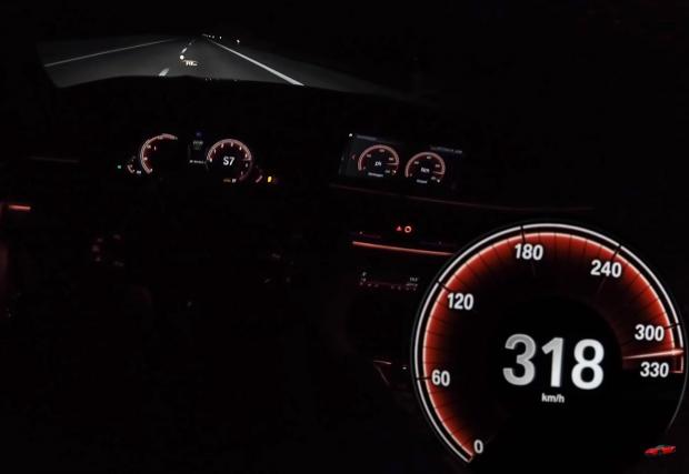С 318 км/ч на аутобана по тъмно, колата е BMW M760Li xDrive. Видео
