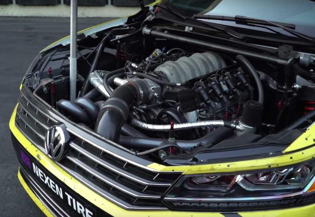 Споменатият осемцилиндров LS7 разполага с нитро кит и достига 900 к.с. Предното предаване е заменено със задно, а скоростната кутия е 4-степенна – достатъчна за дрифт. Звукът също е доста различен от този на Passat-а на съседа ви. Ако сте със слушалки, внимавайте с акустичните нива!