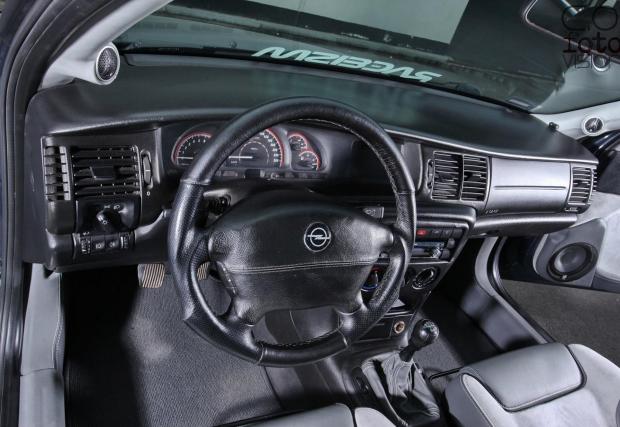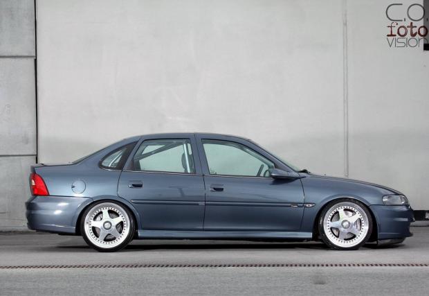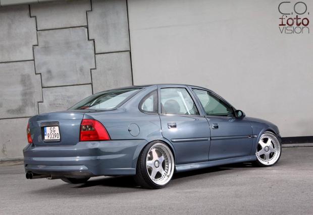 Автомобилът изглежда доста прилично, особено след фейслифта през 1999, а комби версията бе изключително практична. В случая имаме „по-крайна“ Vectra B фейслифт, спусната, с джанти O.Z., спирачки Brembo и доста карбонови детайли. Обърнете внимание и на багажното пространство, което се доминира от говорителите и петата джанта, а областта около скобата на заключващия механизъм е декорирана с шевове, като на бейзболна топка.