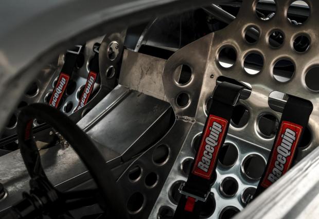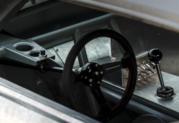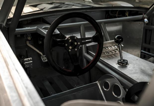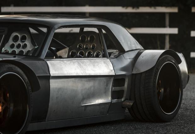 Както се вижда от галерията и видеото, колата не може да се нарече изпипана, но това е част от бруталния и чар. И макар да прилича на доста сплеснат Mustang, силно напомнящ на ‘Hoonicorn’ чудовището на Кен Блок, под ламарините се крие задвижване от Corvette C5. Самият двигател даже не се и крие, а диша на открито.