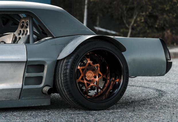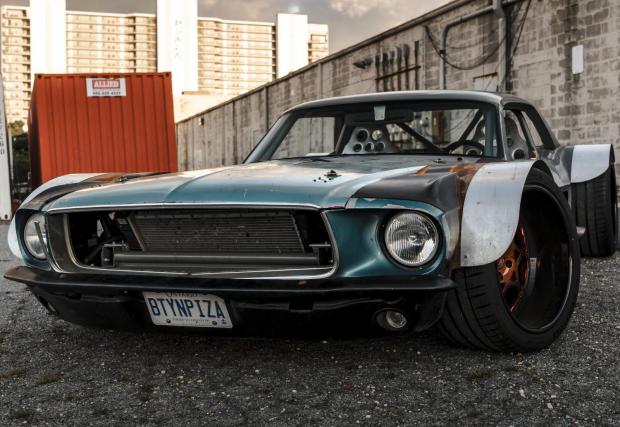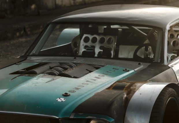 Този изр***ски Mustang е дело на канадски майстор на метала на име Кайл Скайфи. Идеята му идва докато седи в ателието на баща си, който също прави коли, а пред него стои 1971 Plymouth ‘Cuda с чудовищен 8,4-литров V10 от Dodge Viper. Кайл решава, че иска собствен брутален проект, намира уморен ’67 Mustang и хваща флекса.