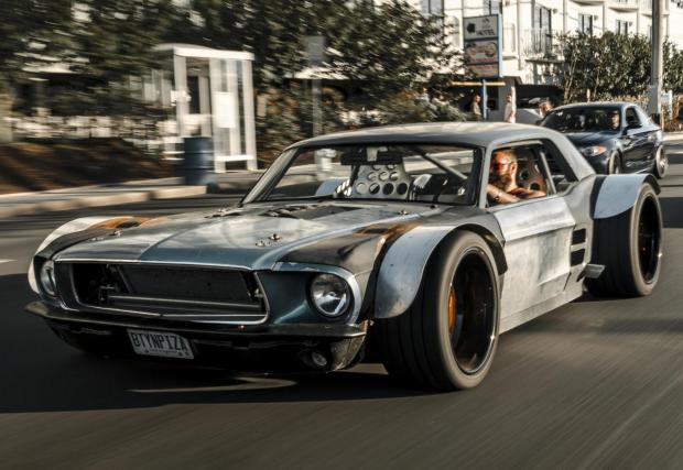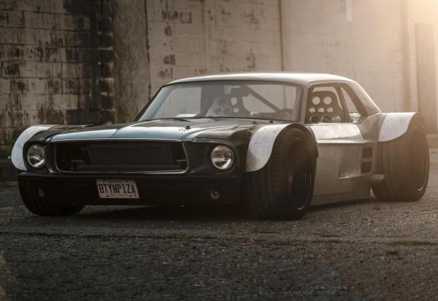 Това е брутален 1967 Ford Mustang с мотор от Corvette. Кара се с розови къси гащи