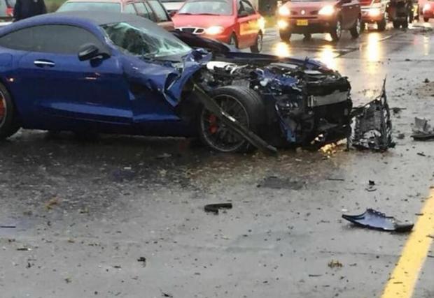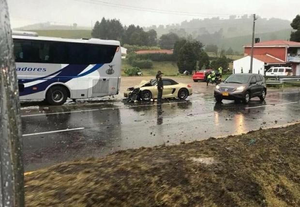 Действието се развива в Колумбия. Освен споменатите в заглавието McLaren 650S, Porsche Boxster S и Mercedes-AMG GT S, на заден план се вижда и непокътнато Porsche 911, както и 458 Italia, което ни кара да мислим, че спортните коли са се движили заедно или че в Колумбия карат по-скъпи коли, отколкото сме очаквали…