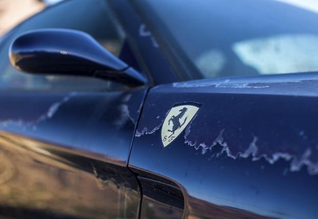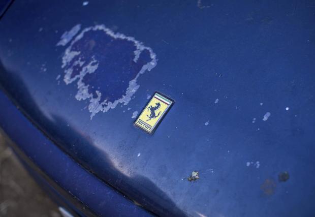 Неясно е по-скоро миналото на колата – актуалното и състояние до голяма степен предопределя нейното бъдеще. Боята е олюпена, дисковете покрити с дебел слой ръжда, като единствено интериорът изглежда относително добре. На една от снимките се вижда и пробегът – добрите 41 хил. км, които не са много за нормална кола, но прилични за едно Ferrari.