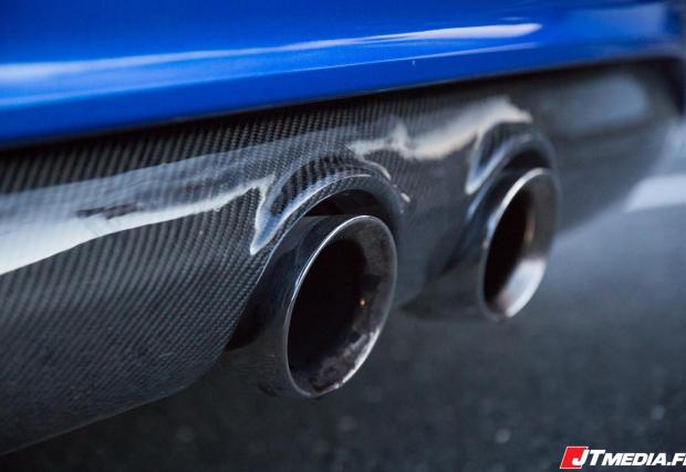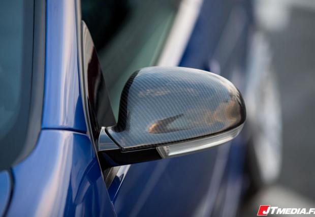 И супер яки 19-ки BBS с карбонови капачки. Карбонови са и огледалат,а както и дифузьорът отзад. Зад BBS-ките пък „прозира“ мощна спирачна система от Porsche, а окачването е въздушно. Всичко останало по колата е в заводски вид, в това число и интериорът.