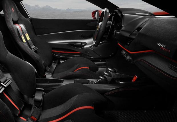 И реално е шосейна кола, а не само за пистата, както някой може да предположи от името. Колата се задвижва от 3,9-литровия туин турбо V8 на 488 GTB, но тук е с 50 к.с. по-мощен до 720 к.с., а самото Ferrari е олекнало с 90 килограма (1280 кг). Супер.