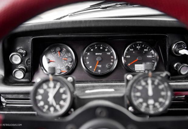 Али отделя изключително внимание на автомобила. Класическата BMW емблема отпред например е изработена от стъкло и обрамчена с метал. Добавени са и фарове Marchal, сплитер Koogleworks, а на капака виждате черни перки в стил BMW 3.0 CSL. Резултатът от този дълъг процес на възстановяване и постепенно усъвършенстване на колата е приказен, казва Али.