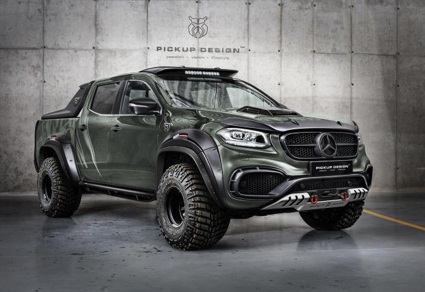 Мега месести гуми, отвори в стил AMG, лебедка метални предпазни шини, LED прожектор над предното стъкло, масивни арки на калниците. Полското ателие Carlex Design са надарили Mercedes X-Class с практични функционалности в стил ‘Arctic Trucks’, като в контраст са направили салона още по-луксозен.
