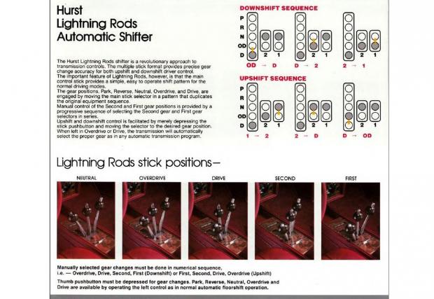 „Hurst Lightning Rods Triple Shifter е революция в смяната на предавките“ се казва в рекламната брошура на Hurst/Olds 15th Anniversary Edition от 1983-та. Колата е базирана на Oldsmobile и е плод на сътрудничеството на GM с фирмата Hurst Performance от Пенсилвания. Сътрудничество, което „ражда“ още няколко модификации през годините, като 15th Anniversary Edition изданието от 1983-1984-та е последното и най-интересно, именно заради странната си трансмисия.