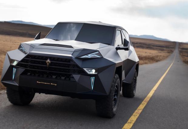 Ако смятате, че идващият по-късно тази година Rolls-Royce Cullinan е най-скъпият кросоувър, който може да си купите, явно не сте чували за Karlmann King. Гигантският китайски модел идва в базов вариант срещу скромните 2 млн. долара, а ако добавите достатъчно опции цената му може да достигне космическите 3,8 млн. от зелената валута. Въпросните опции включват пълна бронировка. Въпреки че на външен вид се е опитал да прилича на стелт, гигантът всъщност е толкова тежък и муден, че се е наложило да се използва платформата на Ford F-550, включително 6,8-литровият V10 с около 400 к.с. тук. Дори с този двигател машината едва развива 140 км/ч. Вероятно заради масата си от 6 тона и убийствената липса на аеродинамика.
