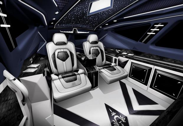 Истинският лукс обаче не е в задвижването или скоростта, а в интериора. Сгъваеми телевизори, хладилник, машина за кафе и електрически масички дават възможност да живеете в Karlmann King, докато ядреният конфликт извън возилото утихне. И все пак може би няколко Range Rover-а биха свършили същата работа?