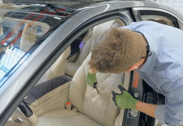 Да съдереш седалката на чисто нов Mercedes S-Class с нож и брадва. Видео