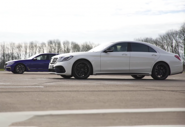 Merc-AMG S 63 срещу BMW M760Li. Кой е по-бърз? Кой спира по-добре? Видео
