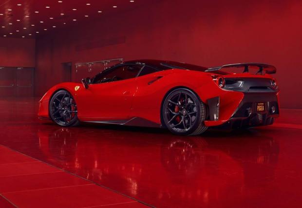 Ferrari 488 GTB е поредната „супер италианка с немско гражданство“. Колата е поучила доста карбон, оптимизации по аеродинамиката и „магии“ за повишаване на двигателните показатели: 820 к.с. и 900 Нм, при серийни 670 к.с. и 760 Нм. В резултат динамиката също е леко подобрена: 0-100 за 2,8 сек (при заводски 3 сек) и 345 км/ч (при 330 км/ч за „базовата“ кола от Маранело).