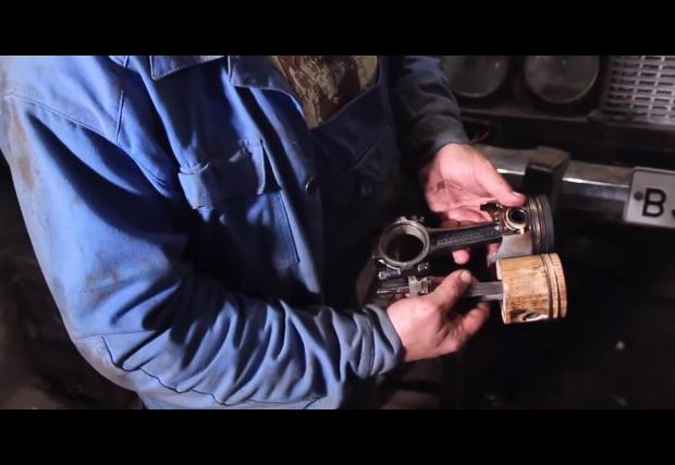 В случай, че се чудите дали тази приумица не е на същият руснак, който напълни гумите на Лада с бетон, да, това е същият човек. Този път ‘Garage 54’ решава да види, какво ще стане, ако направи небрежна смяна на серийните бутала с дървени.