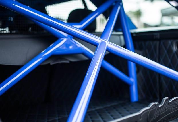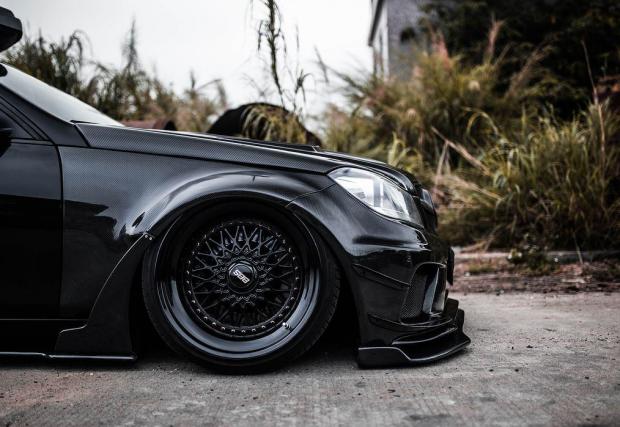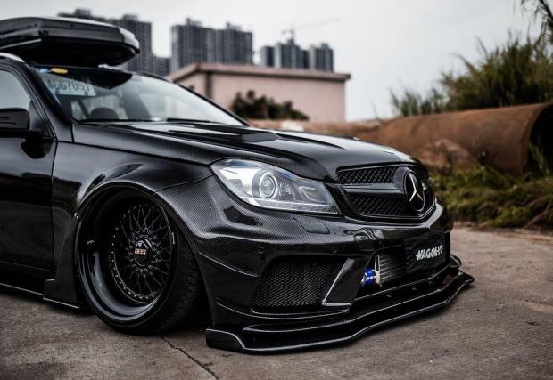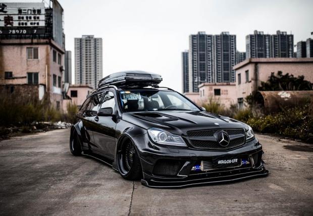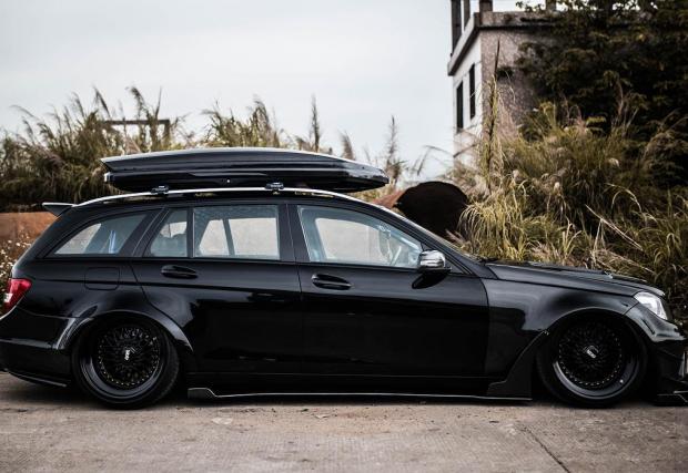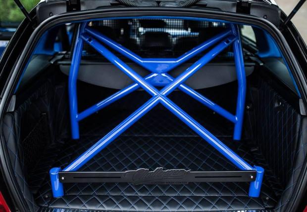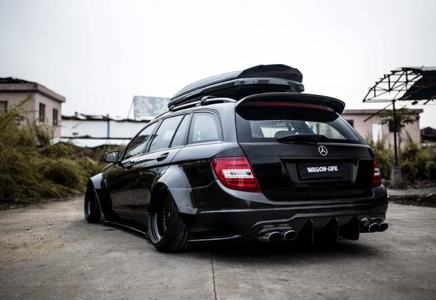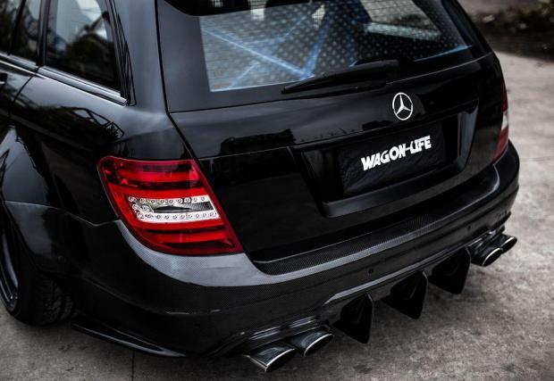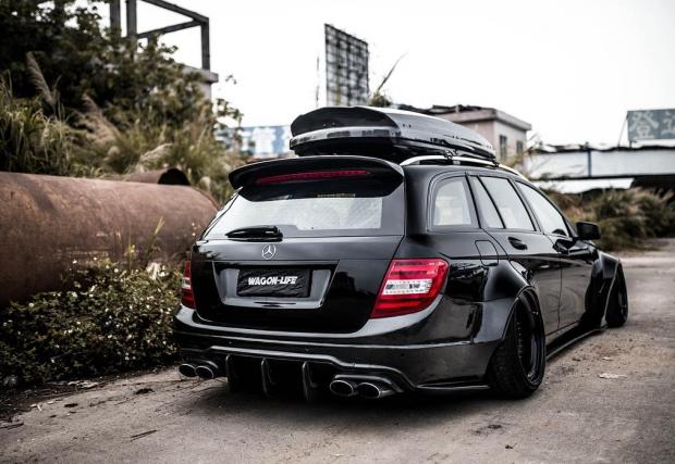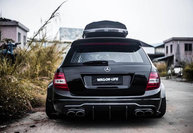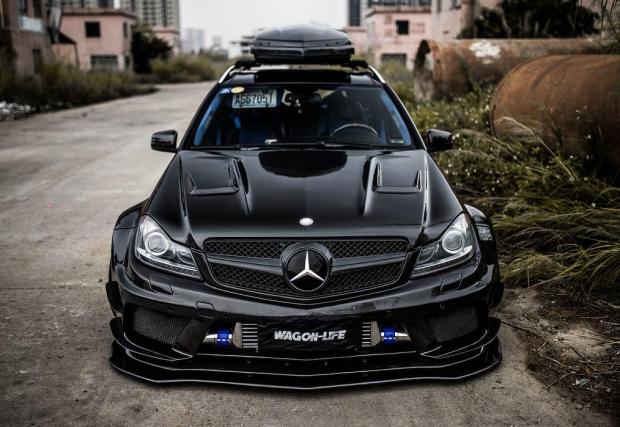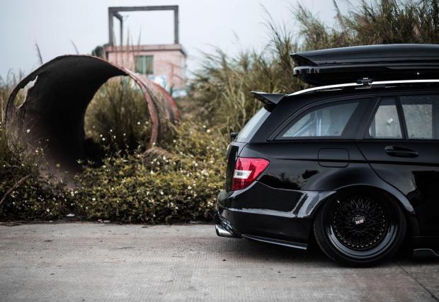 Би следвало едно комби да е по-практично от седан версията на съответния модел. Не и в този случай, в който Merc C 63 AMG T-Model е брутално модифициран. Така модифициран, че в принципно най-практичната област, която дефинира комбито, като... практично, е монтирано синьо скеле.