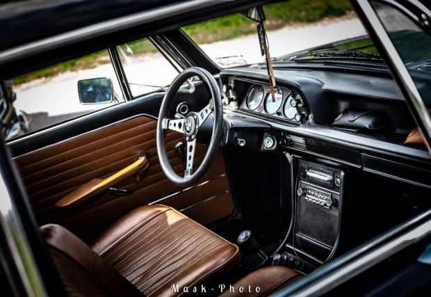 Салонът е напълно заводски, с изключение на волана Petri и командната „плочка“ на въздушното окачване, която обаче остава скрита. На кората под задното стъкло пък седи брой на Playboy от 1973-та, годината на производство на това 2002 tii. Разгледайте галерията, след което кликнете на това прекрасно 2002 tii, което се задвижва от двигател от M3.