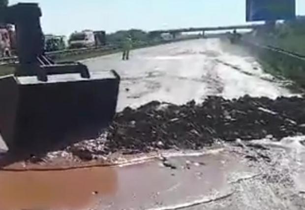 Цистерна се обърна и разсипа 12 тона шоколад на пътя (Видео)