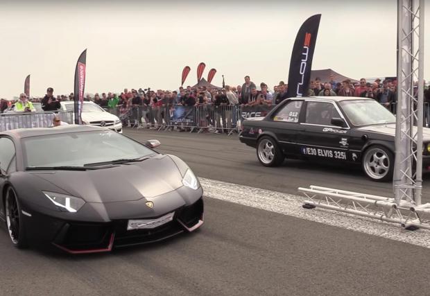 Ще успее ли тунинговано до 725 к.с. E30 да ступа Aventador на драг? (Видео)