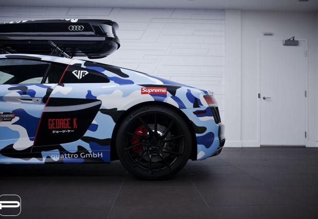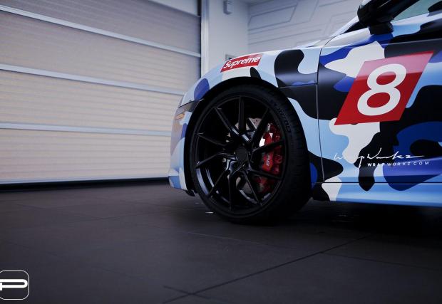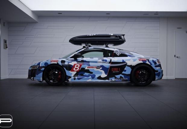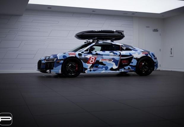 Този Audi R8 е решен в стила на Йон Олсон, но всъщност колата бе споделена със света от PUR Wheels и няма нищо общо с екстремния скиор. Така че започваме с джантите - 20-инчови, които могат да бъдат заменени дори с 21 инча. Могат да се поръчат в различни цветове: Monaco Gold, Brilliant Silver, Lumiere Grey и Anthracite. Както може би знаете, те не са уникални за R8, същите се доставят и за Alfa Romeo Giulia QV и Jaguar F-Type.
