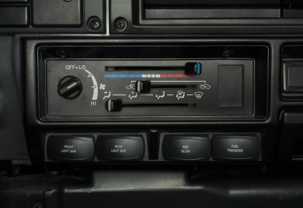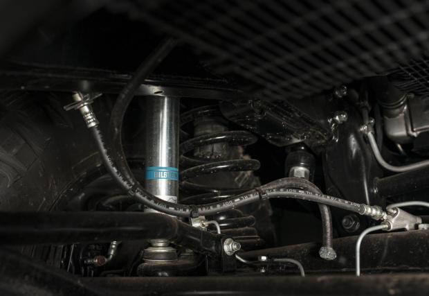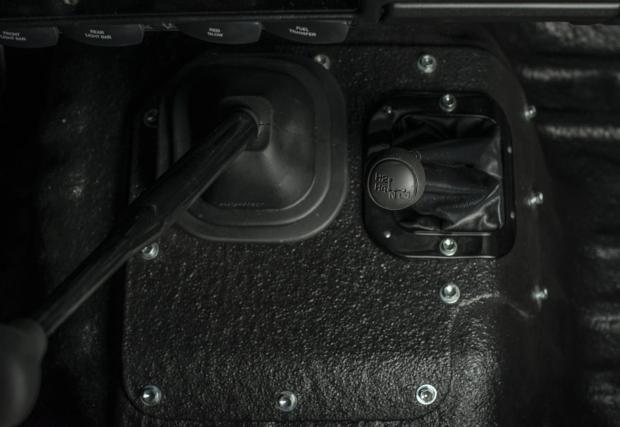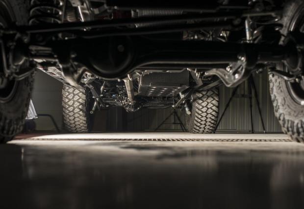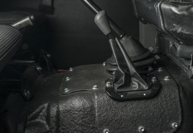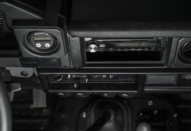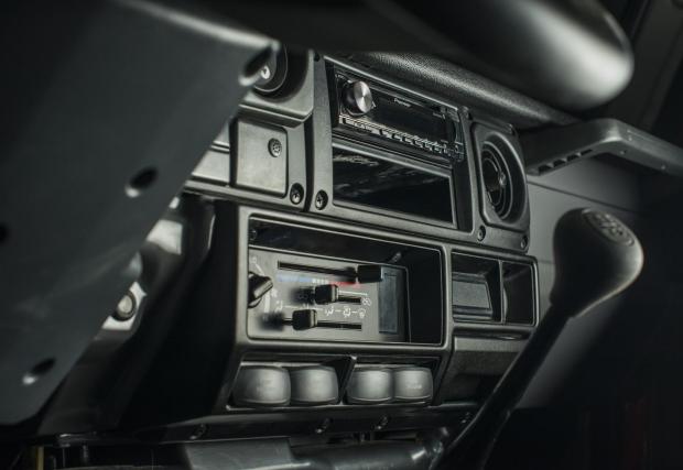 Колата е доста модифицирана. Амортисьорите са Bilstein, а диференциалите с електронен блокаж, така че това Land-и определено не се страхува да излезе извън пътя. Що се касае до интериора, той е ‘period correct’, както обичат да казват англоговорящите. Иначе казано, адекватен на времевия период на оригинала, макар че липсват тривиални работи, като… стелките например. Всичко е покрито с лесен за миене материал, за да е по-лесен живота с колата.