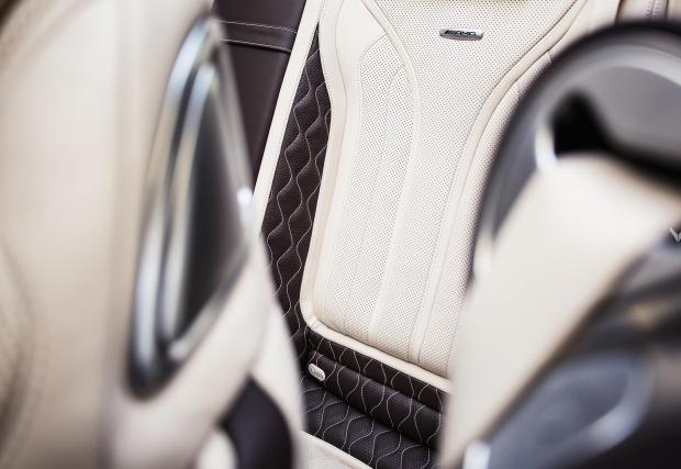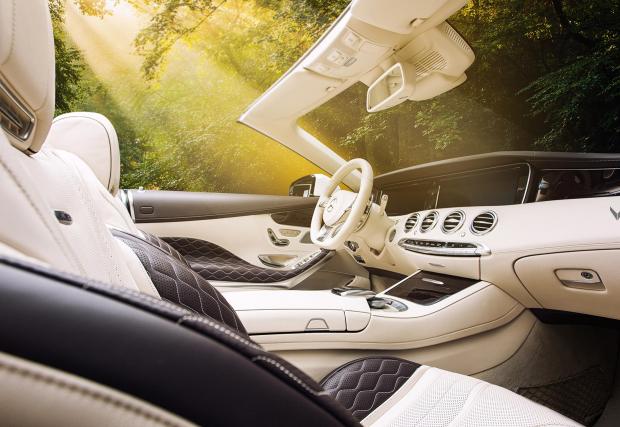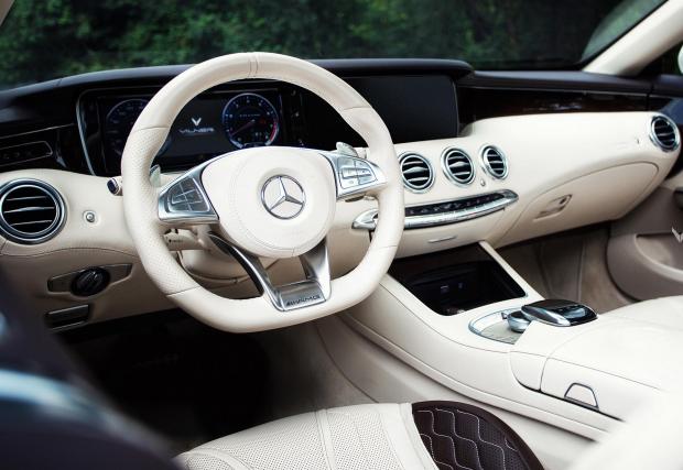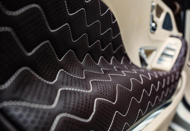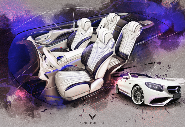 Всъщност, Vilner Design са променили само страничните секции на седалките, но ефектът е доста явен и приятен. От ателието пишат, че са използвали същия материал, който и Merc-AMG за таблото, така че да няма никакви разлики нито за окото, нито на допир. Супер. Самата кола? Разточителният Merc-AMG S 63 4MATIC Convertible, който се задвижва от 5,5-литров битурбо V8 с 585 к.с. и 900 Нм.