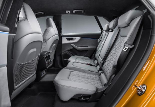 Автомобилът е базиран на платформата на Q7, но е по-къс със 66 милиметра и по-широк с 27. За разлика от 7-мицата обаче, Q8 е с 5 места (вместо 7). За разлика от конкурентите си обаче, линията на покрива и задната вата не са толкова скосени, което вероятно е в полза на вътрешния обем.