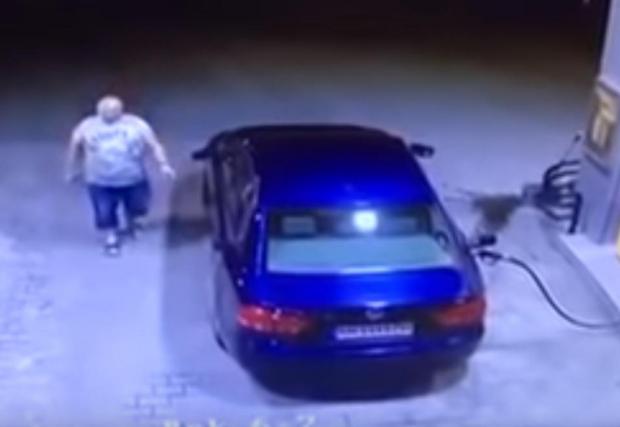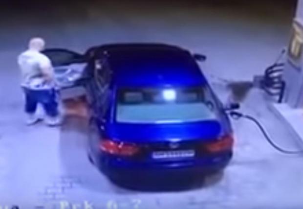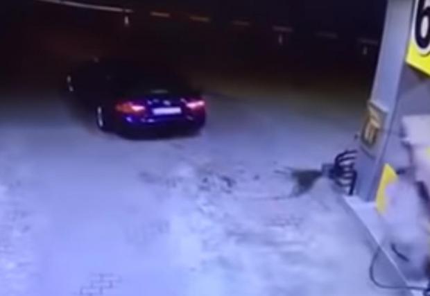 Действието се развива в Украйна, където шофьор потегли от бензиностанция без да е извадил пистолета за зареждане от резервоара. От видеото не стана ясно дали грешката се дължи единствено на невниманието на самия водач или някой служител от бензиностанцията не се е погрижил да извади маркуча след края на зареждането. Във всеки случай собственикът на бавареца необезпокоявано потегля, след което има голямо “БУ-У-УМ!”