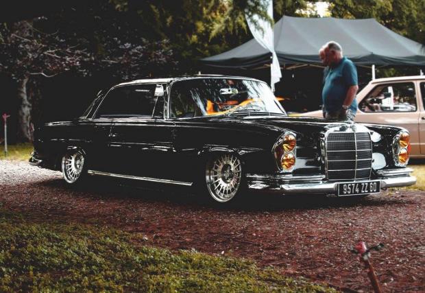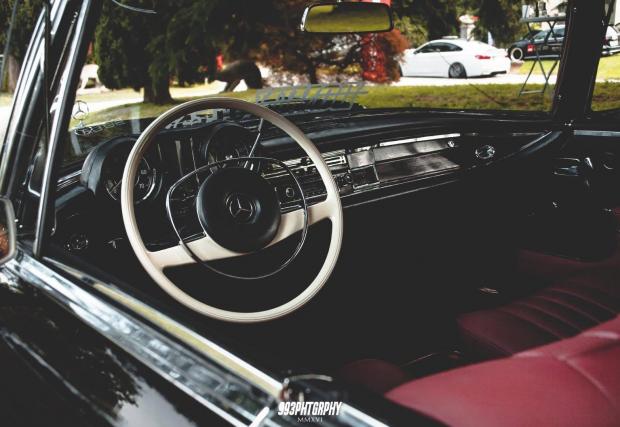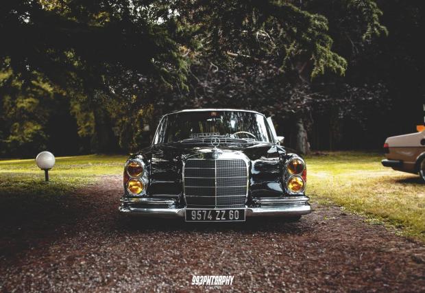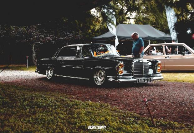 Колата е доста яка, но, НО, очевидно и доста модифицирана. Купе версията W111, в изпълнение 280SE, с въздушно окачване и джанти, които – още по-очевидно – не са от ерата на колата.