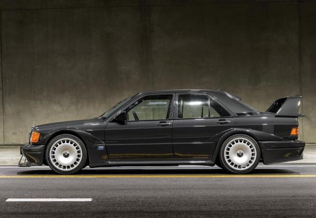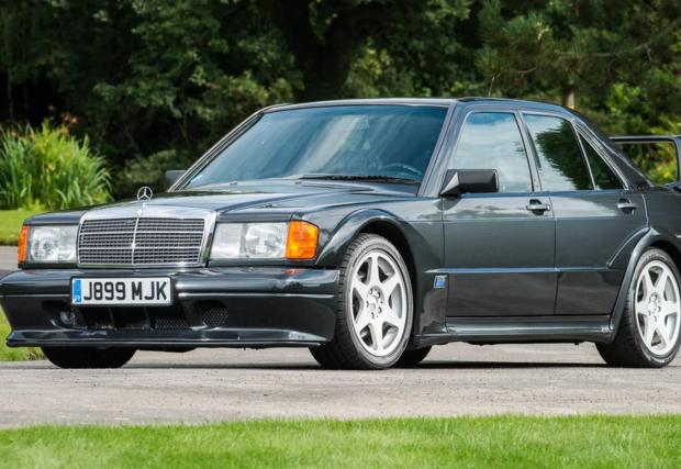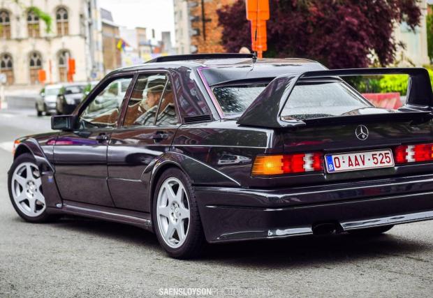 Merc-ът също не е кой знае колко често срещана кола. Зад дългото означение - Mercedes 190 E 2.5-16 Evolution II - се крие екземпляр 167 от 502 произведени, минал малко над 50 000 км в Швейцария и Великобритания. Неговото саморегулиращо се окачване е голяма работа в началото на 90-те, както и 2,5-литровият Cosworth с 235 к.с.