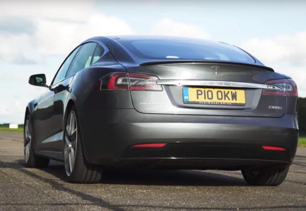 Проблемът с побеждаването на Tesla Model S P100D (762 к.с., 931 Нм) е, че не бива да губите време на старта. Във видеото тук всички участници имат двойно предаване, което донякъде изравнява силите при потегляне.