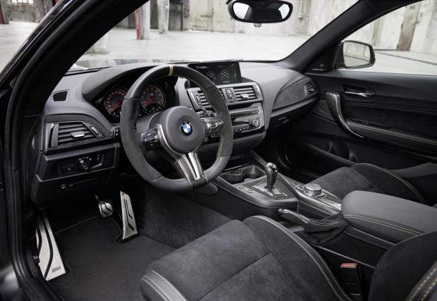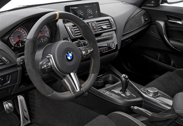 BMW M2 M Performance Parts Concept е набъкано с карбон, което е довело до намаляване на масата с 60 кг., спрямо тази на обикновеното M2. От въглеродния композит са изработени предните калници, капака, тавана и страничните прагове. Предните седалки също са с въглеродни основи, като освен това са и с механични настройки – само те са спестили 9 кг. По-лекият акумулатор е извадил още 14 кг, като по-леки са и 19-инчовите ‘Y-spoke 763M‘ джантите, боядисани във ‘Frozen Gold’ (- 6 кг).