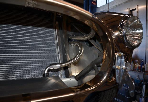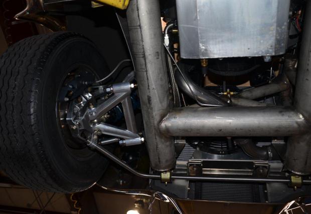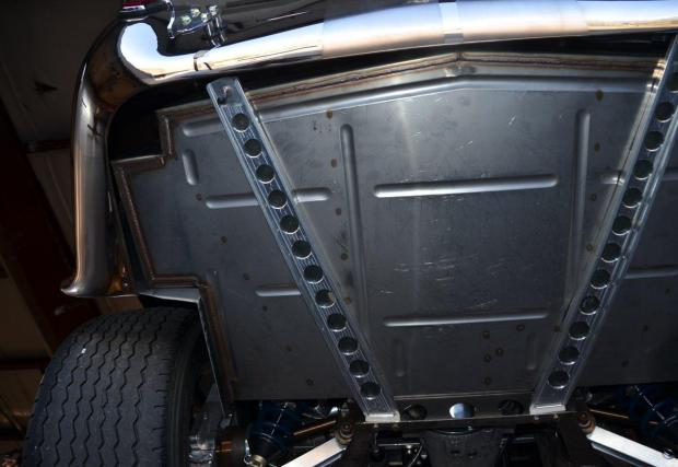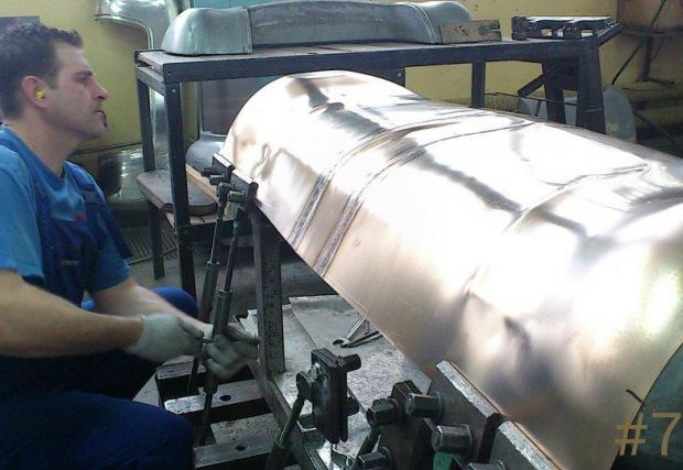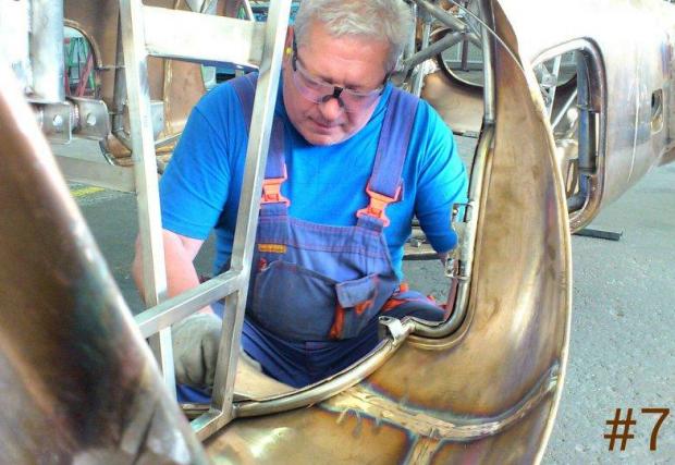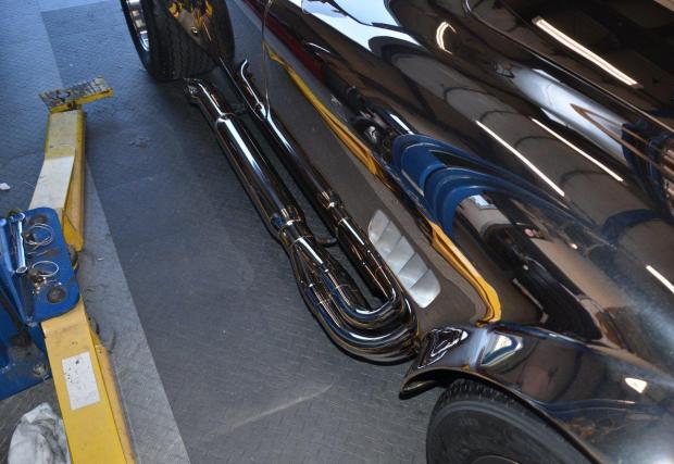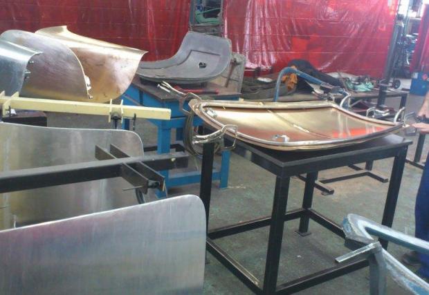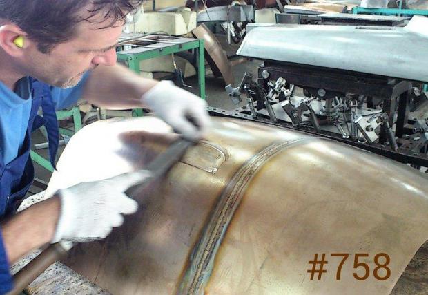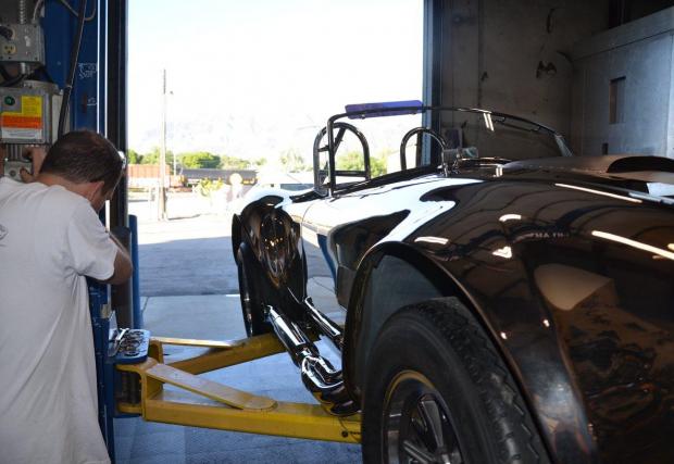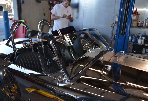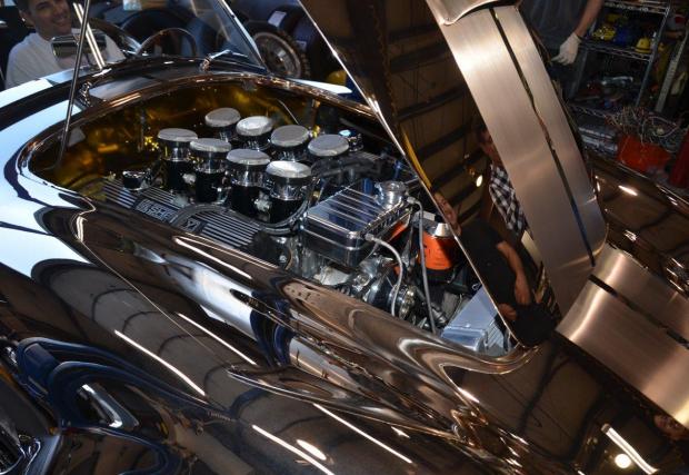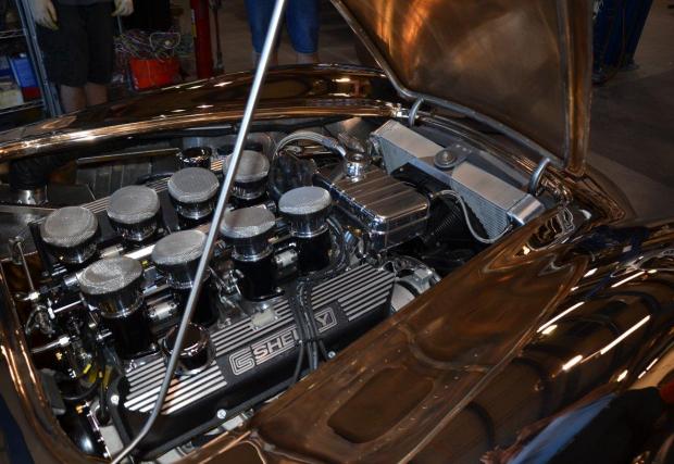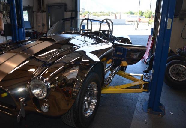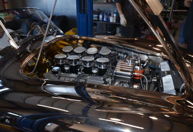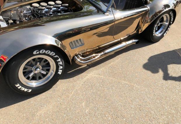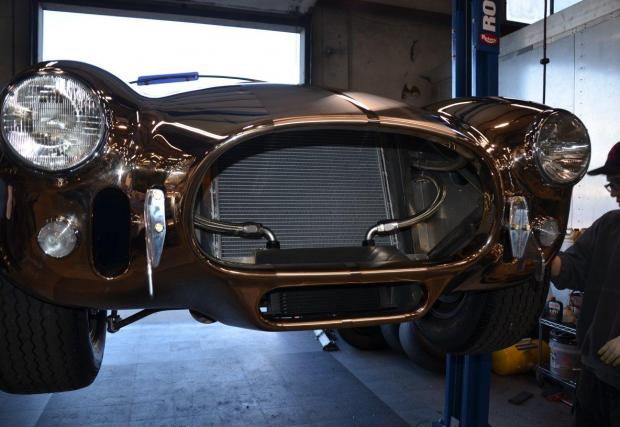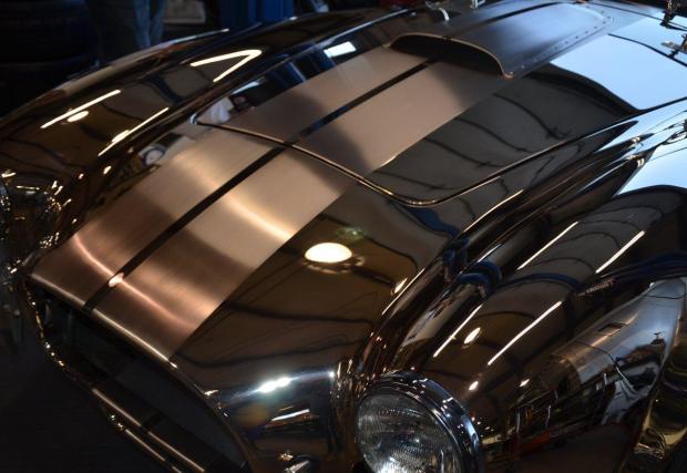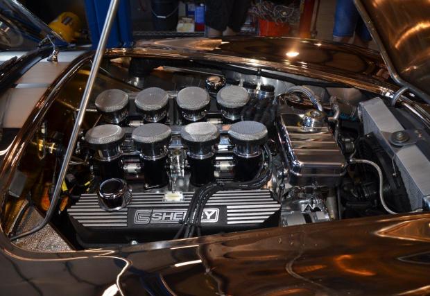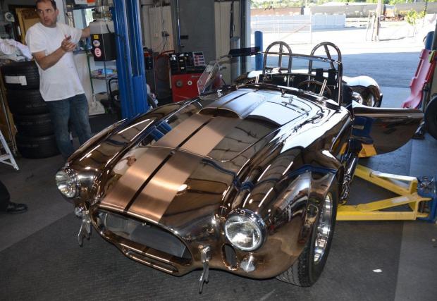 Огъване, удряне с чук, Английско колело, в подробната галерия ще видите как майсторите на ателието превръщат плоскостите в секси формите на AC Cobra. Шасито представлява тръбна конструкция, а двигателят е Shelby ‘big block’: 427 куб. инча (7 литра) V8 или точно какъвто трябва да бъде. Фирмата предлага две опции за окачването, като при оригиналната Cobra или модернизиран лек вариант, какъвто е монтиран на този автомобил.