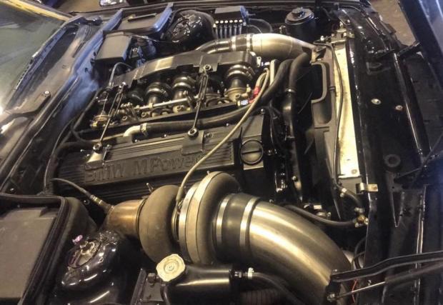 Собственикът не споменава какви са модификациите, но е ясно, че основен принос за тези 1000+ коня има едричката турбина BorgWarner. Двигателят е 6-цилиндровия S38 или поне това, което е останало от него, след преработката.