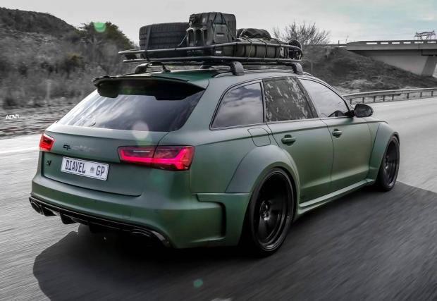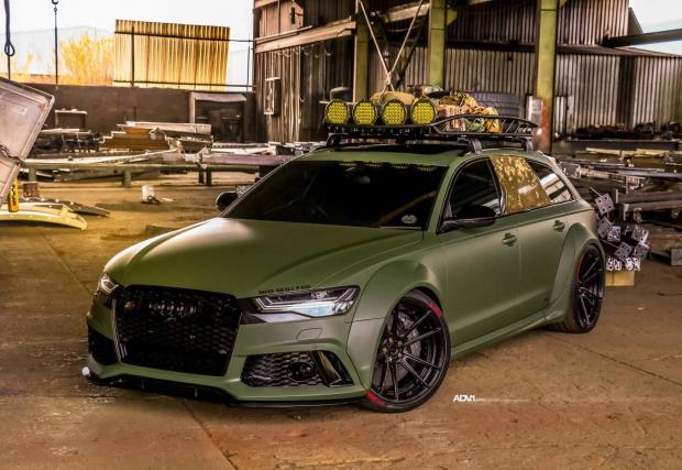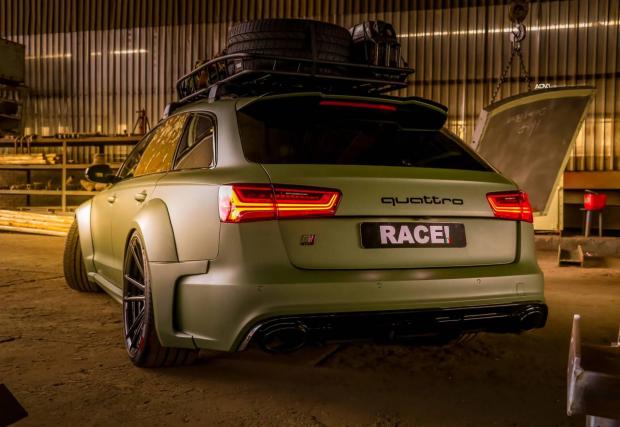 Търсите си камуфлажно Audi, за да не биете много на очи? С това определено ще предизвикате поне квартален, ако не световен конфликт. Освен очевидния зелен цвят, промените спрямо стандартното RS 6 включват разширени арки на калниците, черни джанти ADV.1, черна боя е добавена също по предната решетка и отворите за охлаждане. Не искаме да знаем колко оръжия могат да се поберат в гигантския багажник на RS 6, само ще отбележим, че тунинг пакетът е от южноафриканската компания Race!, за която за първи път чуваме... О, щяхме да забравим, багажникът на покрива е супер попадение за кола, която може да развие 300 км/ч...