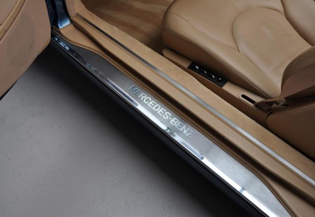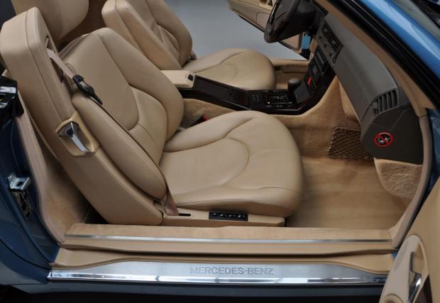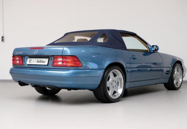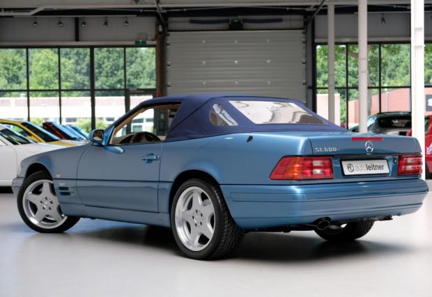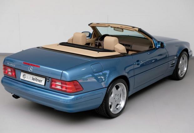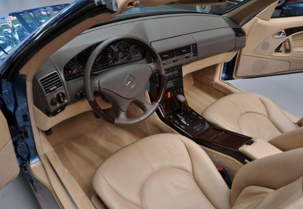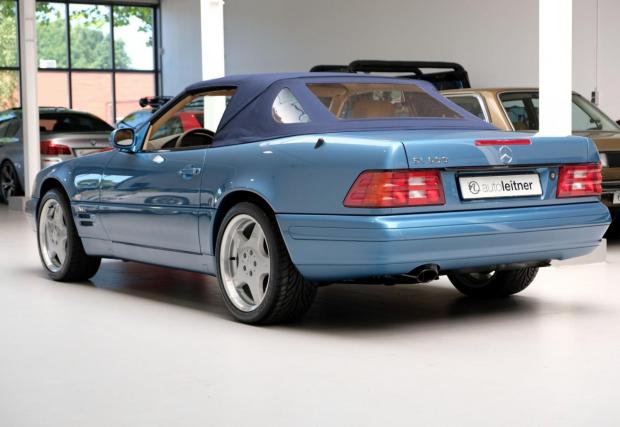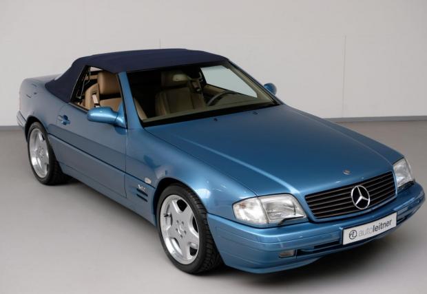 Споделете мнението си с коментар, след което може да кликнете на останалите снимки тук в материала. Черният SL 320 с червен гюрук е от 98-ма и се продава от същия дилър за 39 500 евро, а този SL най-долу е с най-големия двигател вграждан някога в модела: 7,3-литровия V12 с 525 к.с. Последната снимка в текста е на SL 55 AMG (R230), също култова модификация, която излезе едва година след синия Benz от основната галерия.