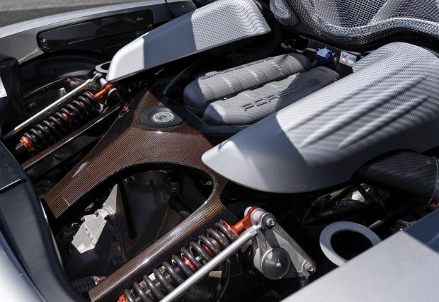 „Моторът е базиран на 5,5-литровия V10, с който Porsche участваше в Льо Ман, но тук разпробит до 5,7 литра (5733 куб. см), машина която звучи е-по-хал-но! Нищо общо със съвременните двигатели, турбо мотори, хибридни системи или каквото искате. Максималната му мощност е 612 к.с. при 8000 об/мин, а въртящия момент – 590 Нм при 5750 об/мин. Достатъчни за много сериозна динамика.“