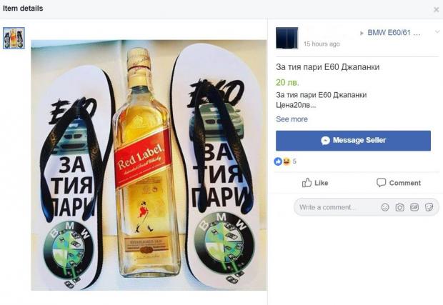 Фраза, която Христо (не знаем дали идеята е негова или взаимствана от някъде) е видял възможност за бизнес, предлагайки… джапанки с въпросния израз. На снимката на офертата, освен въпросните летни принадлежности за ходене с логото на BMW, предница на E60 M5 и летящи банкноти (всичко в повече би било излишно и направило картинката… натруфена), присъства и бутилка твърд алкохол, за цвят.