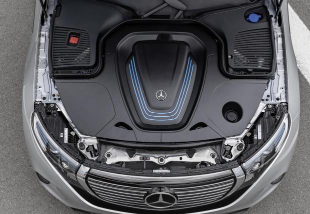 Под издължената каросерия (нещо като швабски Range Rover Velar) ще откриете познатата от много електромобили конструкция. Литиево-йонна батерия с 80 кВтч (тежи 650 кг, което е горе-долу четвърт от тежащия 2,4 тона гигант) е разположена под пода, така че центърът на тежестта е запазен ниско долу, а и безопасността е подобрена. Предният електромотор е насочен към повече ефективност, докато задният - към повече динамика. Двата елдвигателя означават, че EQ C е с двойно предаване, подобно на Tesla Model X и Jaguar I-Pace.