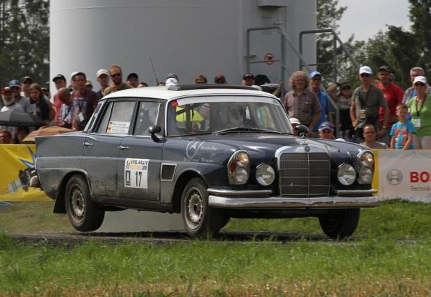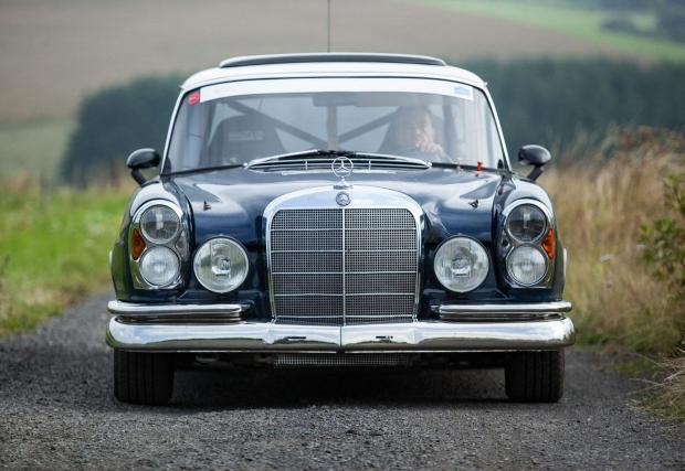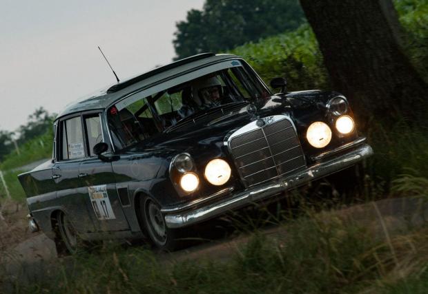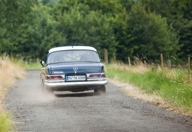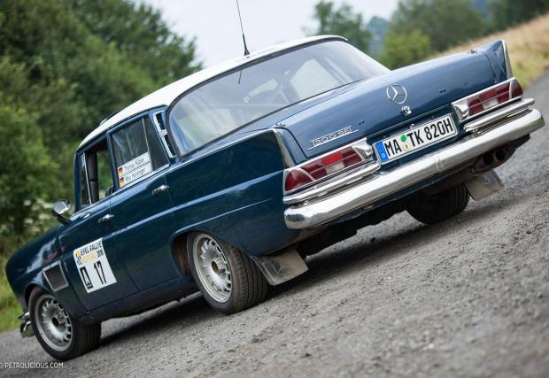 Mercedes 300SE, който Макс купува със съсипани скорости и окачване. Част от панелите каросерията също не са в цветущо здраве, но след доста работа, автомобилът е в прилично състояние. Резервоарът е сменен със състезателен, седалките също, инсталирани са и 5-точкови колани. Те, както и електрониката, необходима за ралитата, са в страхотен контраст с 54-годишното табло.