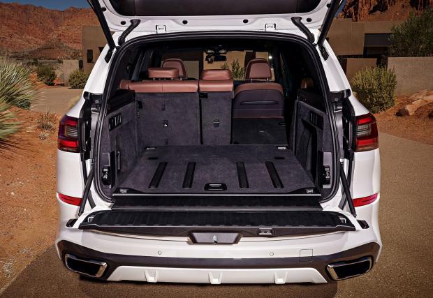 Срещата на живо е различна от разглеждането на снимки и гледането на видео, това е ясно. Ясно ни стана и, че огромните 22-инчови джанти всъщност седят доста хармонично на колата, като причината за това е, че новото X5 G05 е по-голямо отпреди. Пораснало е с 36 мм на дължина, вече 4922 мм, като междуосието е отбелязало още по-сериозен ръст от +42 мм, който се усещат особено на задния ред. Мястото е много, багажникът също е голям (650 литра, като при бутане на всички облегалки колата може да побере 1860 литра) и с геометрични форми, а потъващата в пода ел. щора е решение, което със сигурност ще бъде копирано и от други производители.