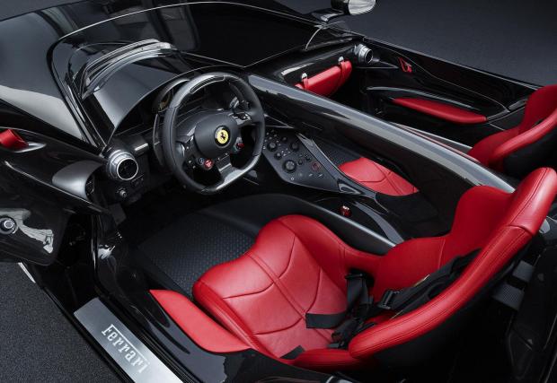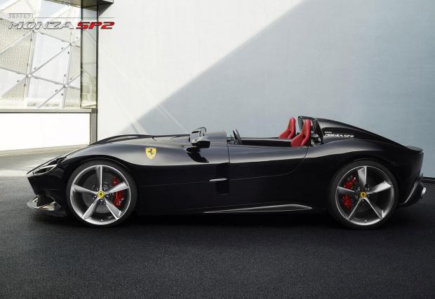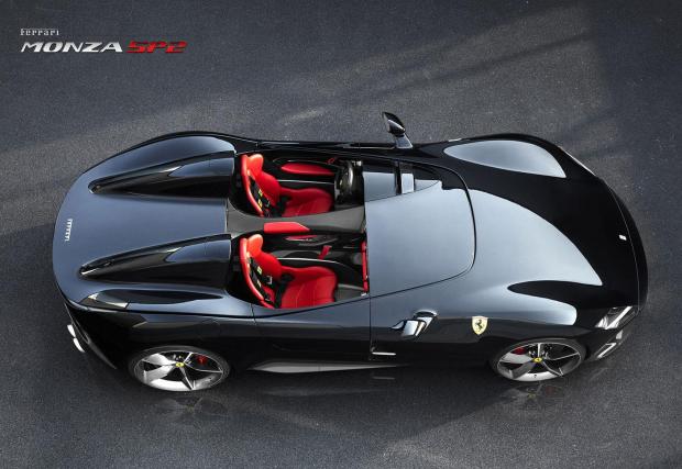 Към колите. Те са от нова серия на Ferrari, която се казва ‘Icona’ и която има за цел да почете състезателните автомобили на марката от едно време. В случая, Monza SP1 и SP2 интерпретират елементи от 1948 166 MM, 750 Monza и 860 Monza, по супер успешен начин. Вижте само тези странични линии – приказни. Конструкциите на двете коли са изцяло карбонови, като предните капаци са цели „черупки“, отварящи се напред както е било едно време. А под тях се открива страхотна гледка: 6,5-литровият атмосферен V12, който е най-мощният агрегат на италианците правен някога.