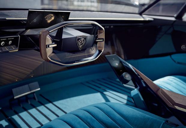 Основен акцент в концепцията е неговата „свързаност“ и дигиталните забавления. За целта таблото реално представлява голям 49 инча дисплей, към който пътниците имат пълна видимост, благодарение на прибиращия се волан. Последното се случва в един от двата автономни режима на каране ‘Soft’ и ‘Sharp’, докато другите два ‘Legend’ и ‘Boost’ карате вие, като на таблото се появява дигитална версия на уредите на 504 Coupé, Яко.