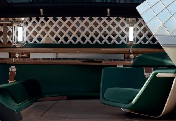 Интериорът е вдъхновен от луксозен хотел, очевидно дизайнерите са били лишени от проблема да се чудят къде да скрият волана. Качването става отдясно през гигантска плъзгаща се врата, а местата са едва три, което превръща EZ-Ultimo във вероятно най-неефективното возило на планетата. Особено като имате предвид междуосието, което може да сдуха сериозно дългата база на Mercedes S-клас.