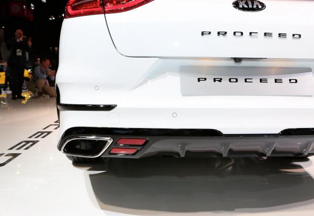 Kia ProCeed също разчита на четириъгълна хромирана рамка...