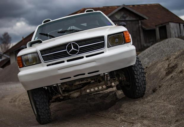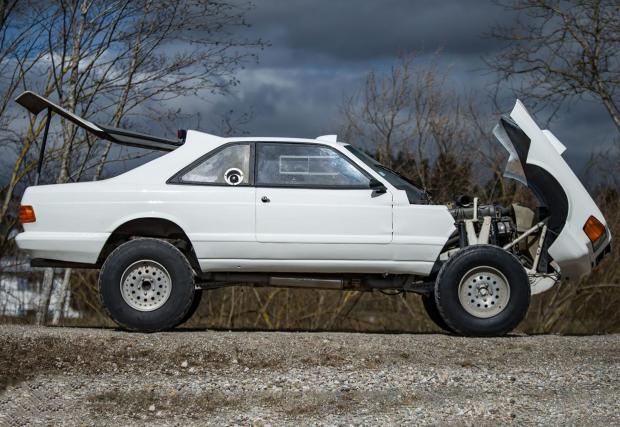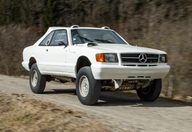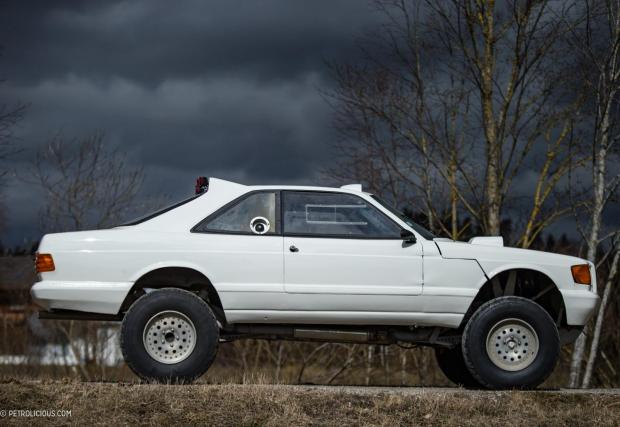 Попаднахме на този мега странен Mercedes-Benz 560 SEC (C126) в Petrolicious.com. Колата, както виждате, е доста интересна и определено една от най-интересните S-ки, която някога сме виждали. Автомобилът е модифициран през 80-те години, като в проектът определено са хвърлени доста усилия. Качен е на допълнителна рама, която служи като преходна за шасито от G-Class. Гумите също са с произход G-Wagen, предпазната клетка е от алуминий, а седалките със сертификат от FIA.