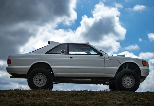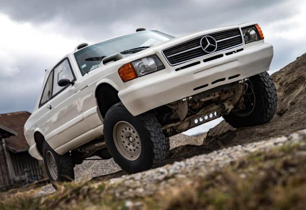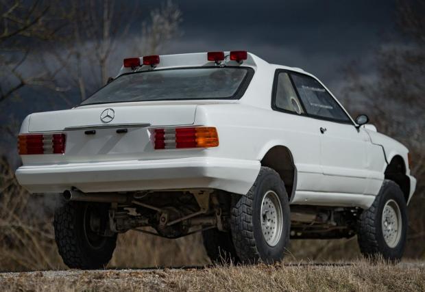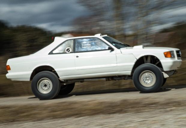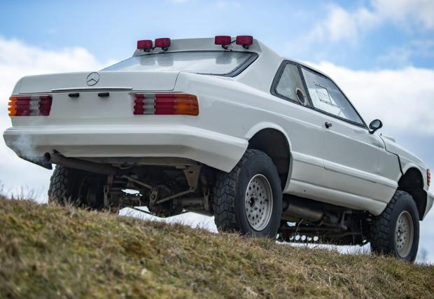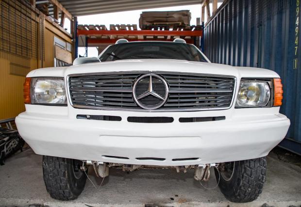 Това е Mercedes-Benz 560 SEC от 80-те, направен за тежкото рали „Париж-Дакар“